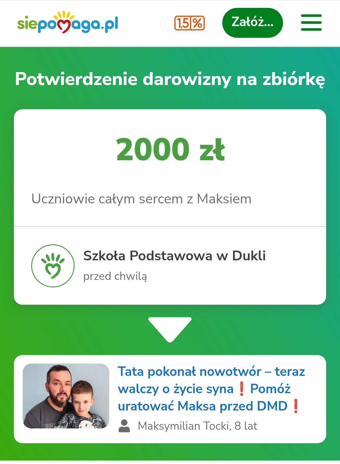 Dziękujemy uczniom, rodzicom, nauczycielom oraz pracownikom szkoły za każdą ofiarowaną złotówkę, która wzbogaciła konto chorego Maksia. Pamiętajmy, że dobro wraca, dlatego warto się nim dzielić.