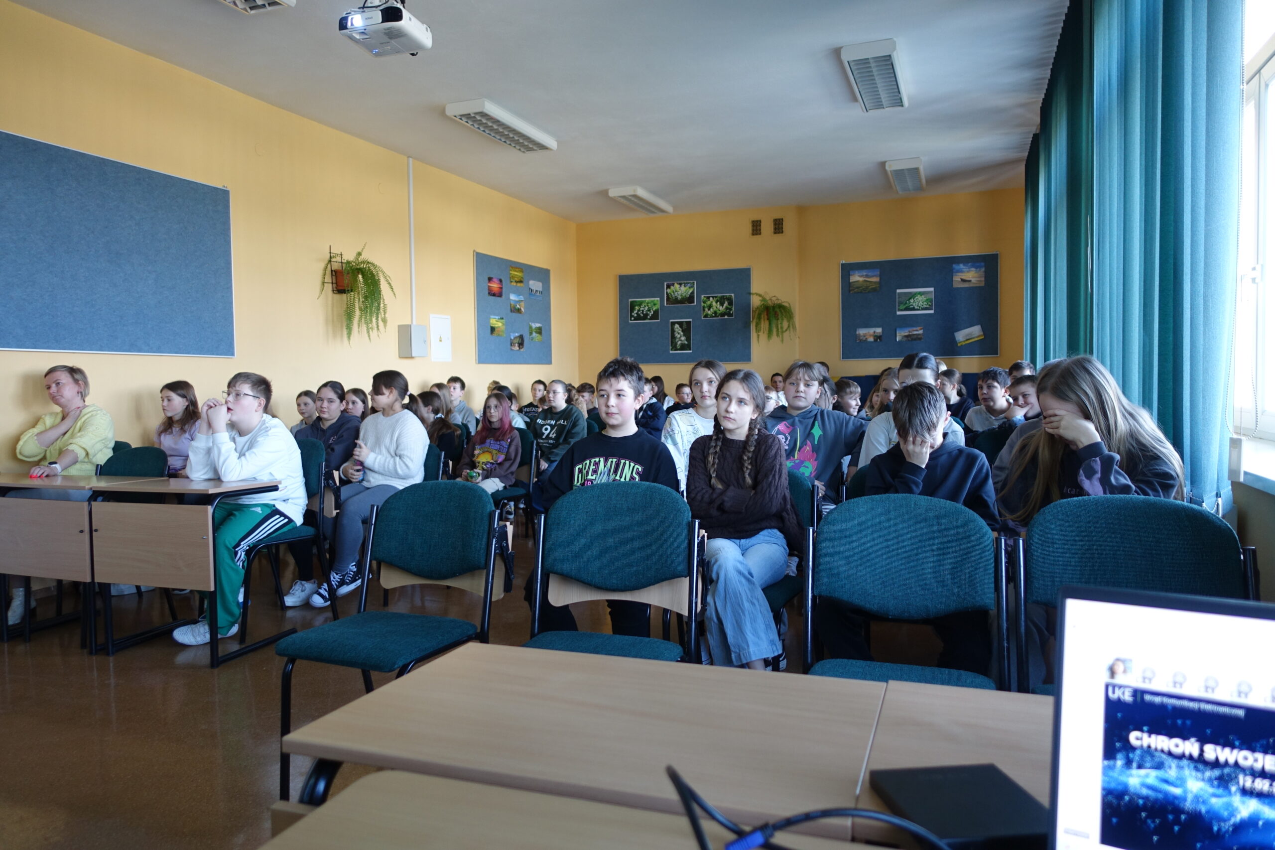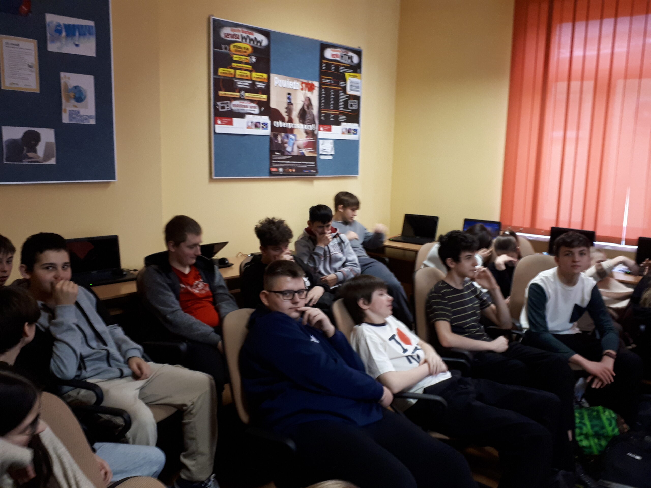 Działania podjęte w szkole miały przede wszystkim charakter zajęć edukacyjnych, ale nie tylko, bo zorganizowano także konkurs na plakat tematyczny i przygotowano gazetki ścienne. Oprócz lekcji z zakresu bezpieczeństwa w sieci realizowanych na informatyce, zorganizowano dla części klas 4-8 lekcje online.