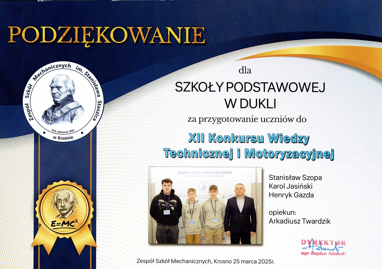 W dniu 25 marca 2025. w Zespole Szkół Mechanicznych w Krośnie odbył się finał wojewódzkiego XII Konkursu Wiedzy Technicznej i Motoryzacyjnej. Do rywalizacji zgłoszono 121 uczniów z 45 szkół podstawowych całego województwa podkarpackiego.
