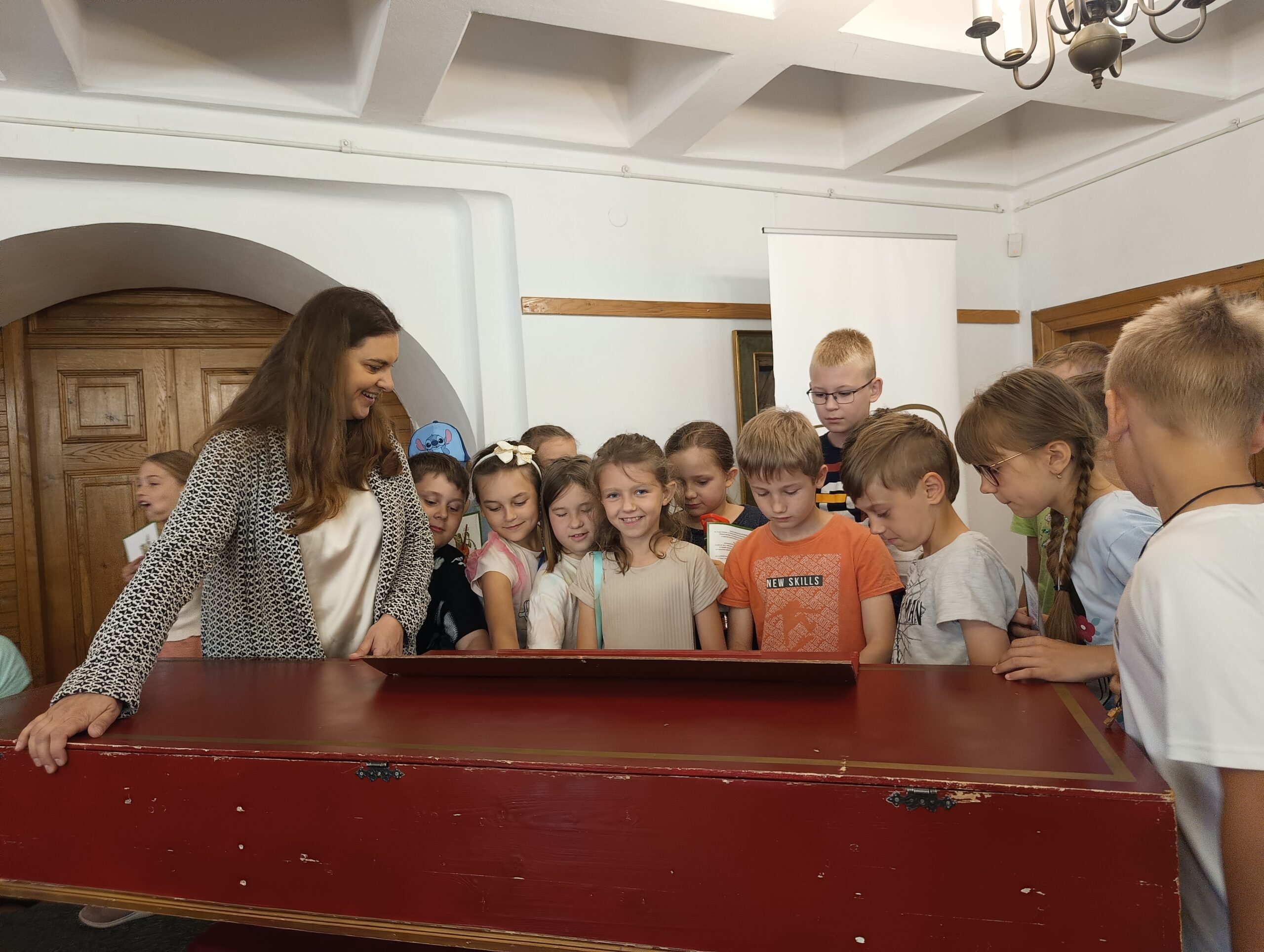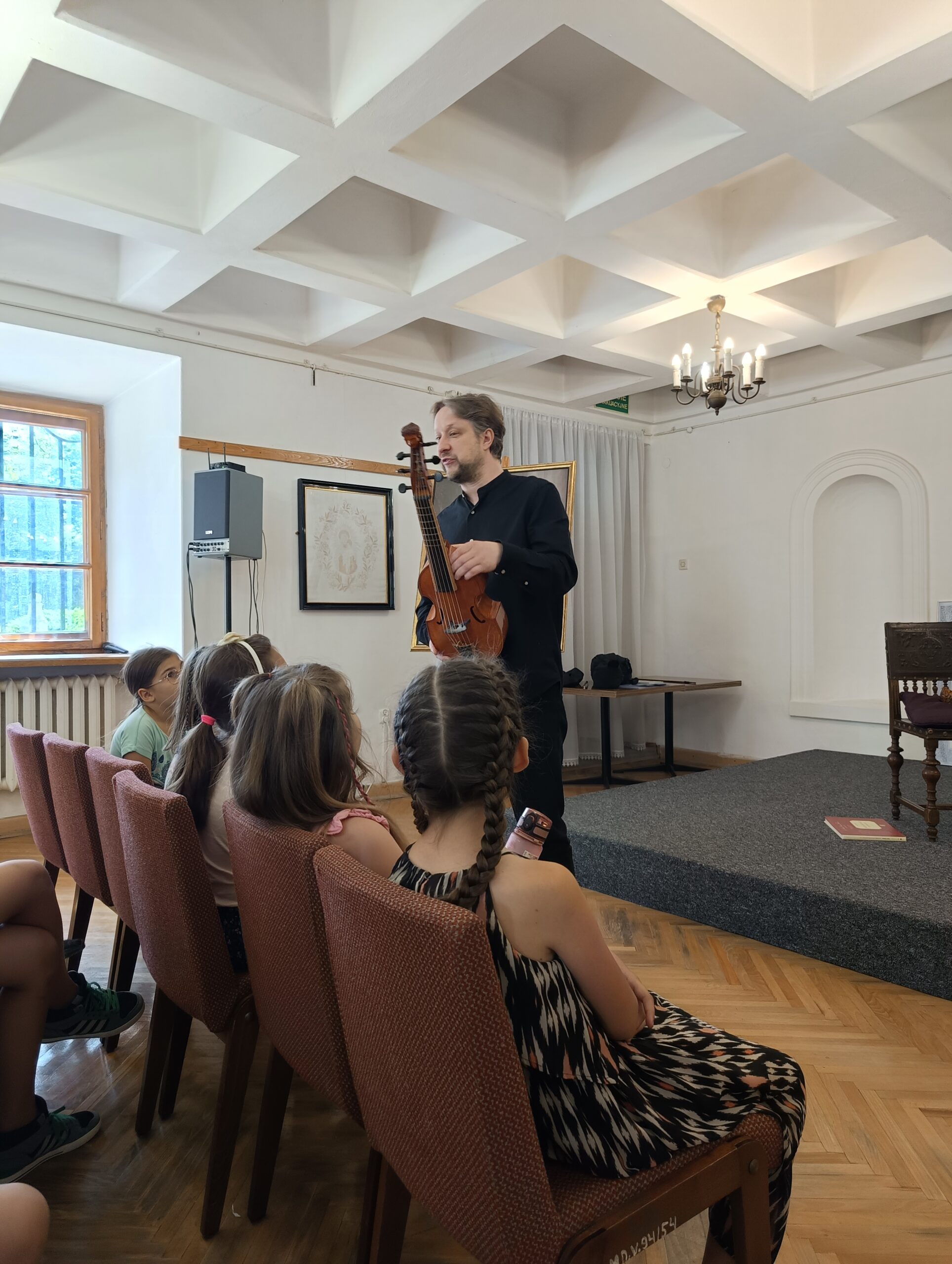 Dzięki uprzejmości dyrektora Muzeum Historycznego – Pałac w Dukli, pana Mateusza Sucha klasy 2c, 4c i 5b wzięły udział w lekcji muzealnej składającej się z dwóch części. W pierwszej części uczniowie zapoznali się z budową XVIII – wiecznych, bardzo ciekawych instrumentów muzycznych. Najpierw pokazana została viola da gamba – instrument smyczkowy, używany na dworach do gry solowej i zespołowej. Drugim był wirginał – mały instrument muzyczny, odmiana klawesynu mająca jedną strunę zamiast dwóch. Po wyjaśnieniu wszystkich kwestii związanych z budową i historią, pani Patrycja Domagalska-Kaluza i Mateusz Kowalski – członkowie zespołu Filatura Di Musica – odegrali koncert, który dla uczniów był bardzo ciekawym przeżyciem … dźwięki melodii sprzed kilku wieków okazały się inne niż te, które słuchają na co dzień.
