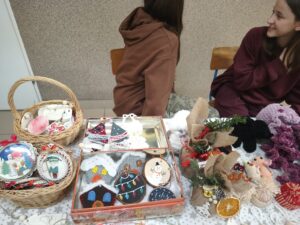 Można było zakupić własnoręcznie wykonane przez uczniów klas szóstych ozdoby i kartki świąteczne. Uczniowie wykonywali je podczas zajęć dodatkowych koła technicznego.