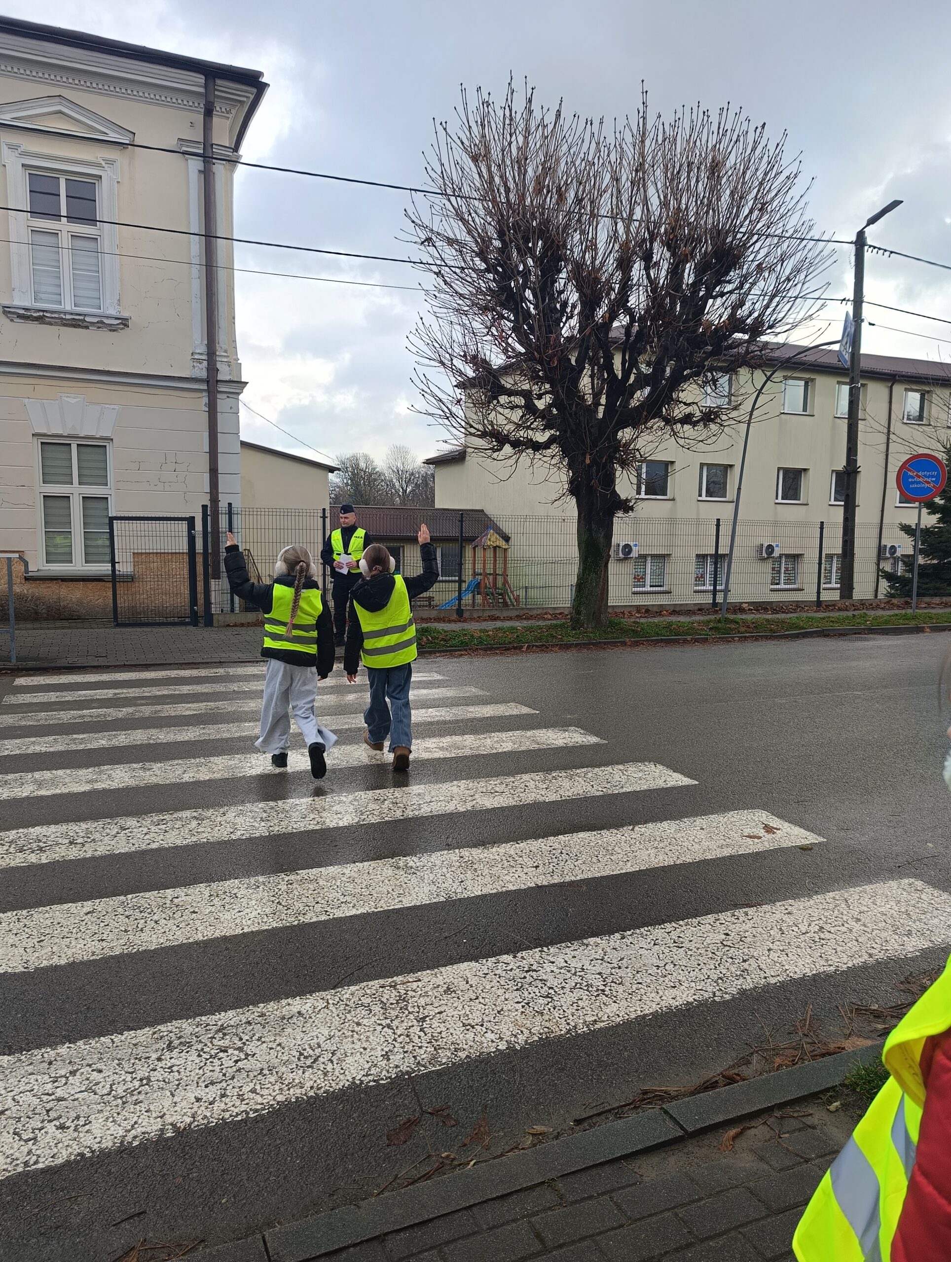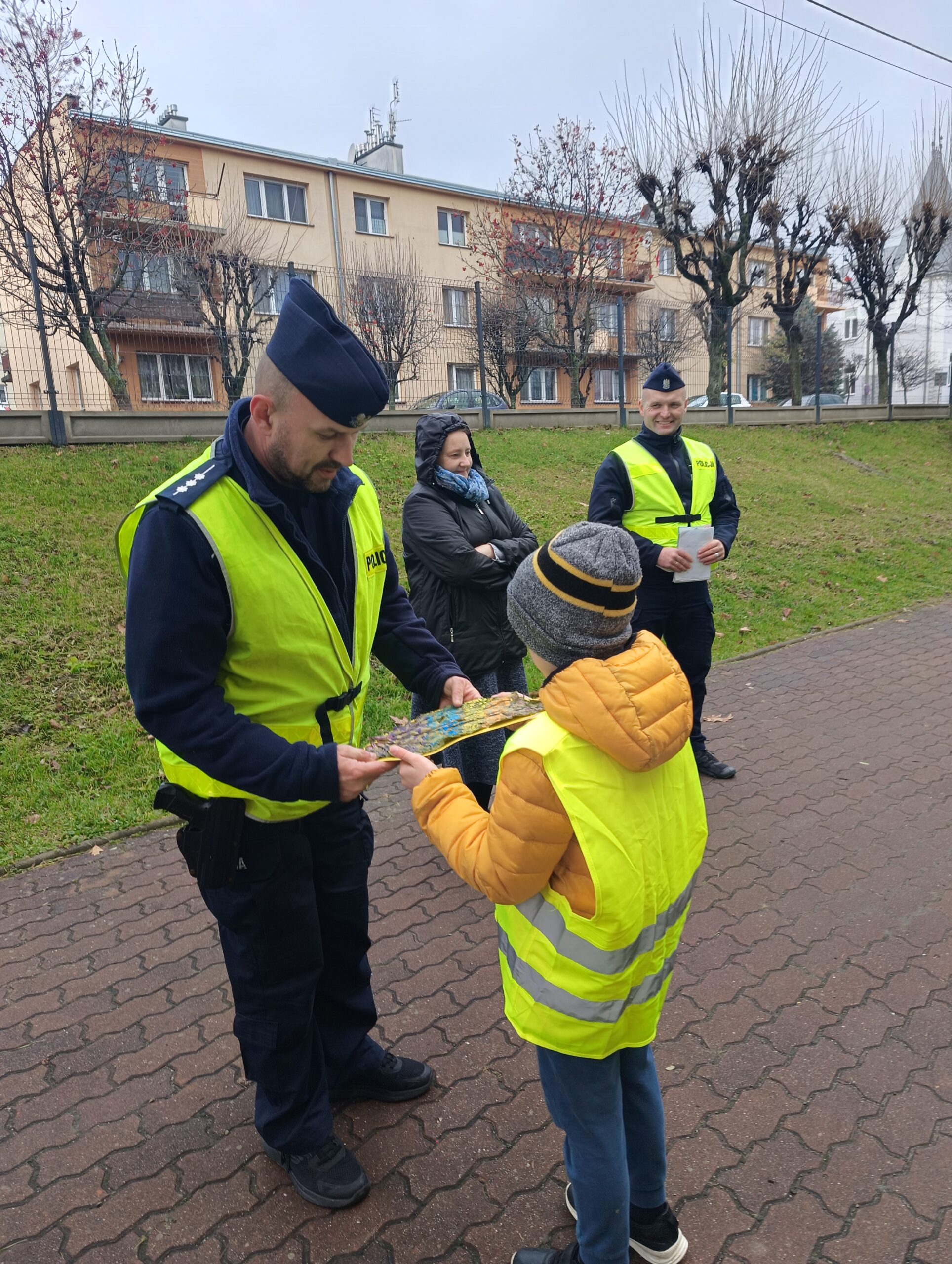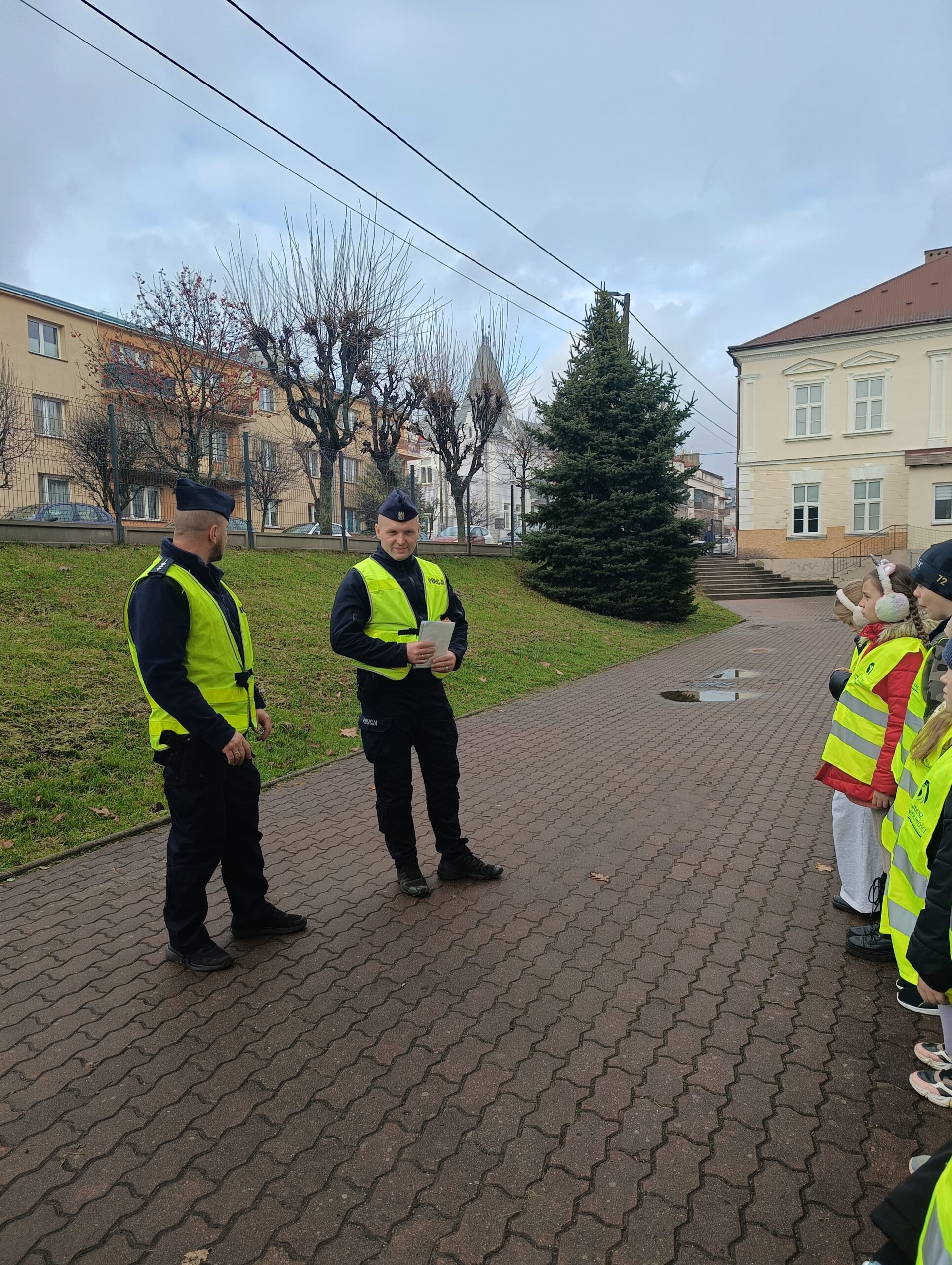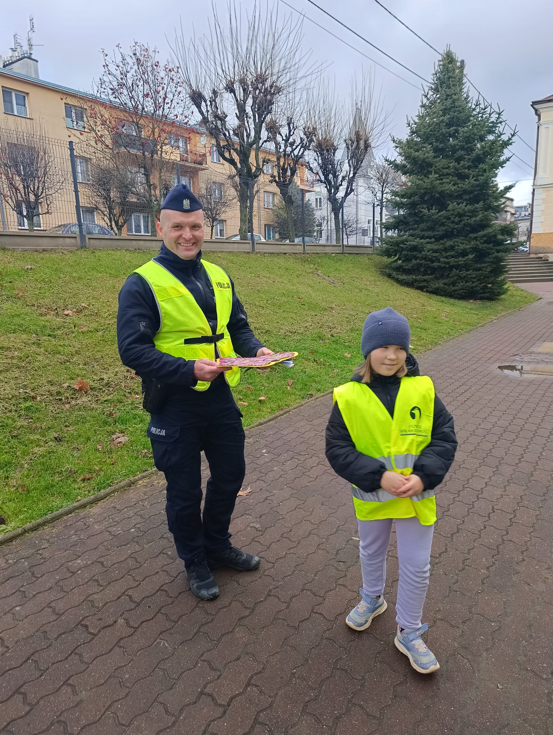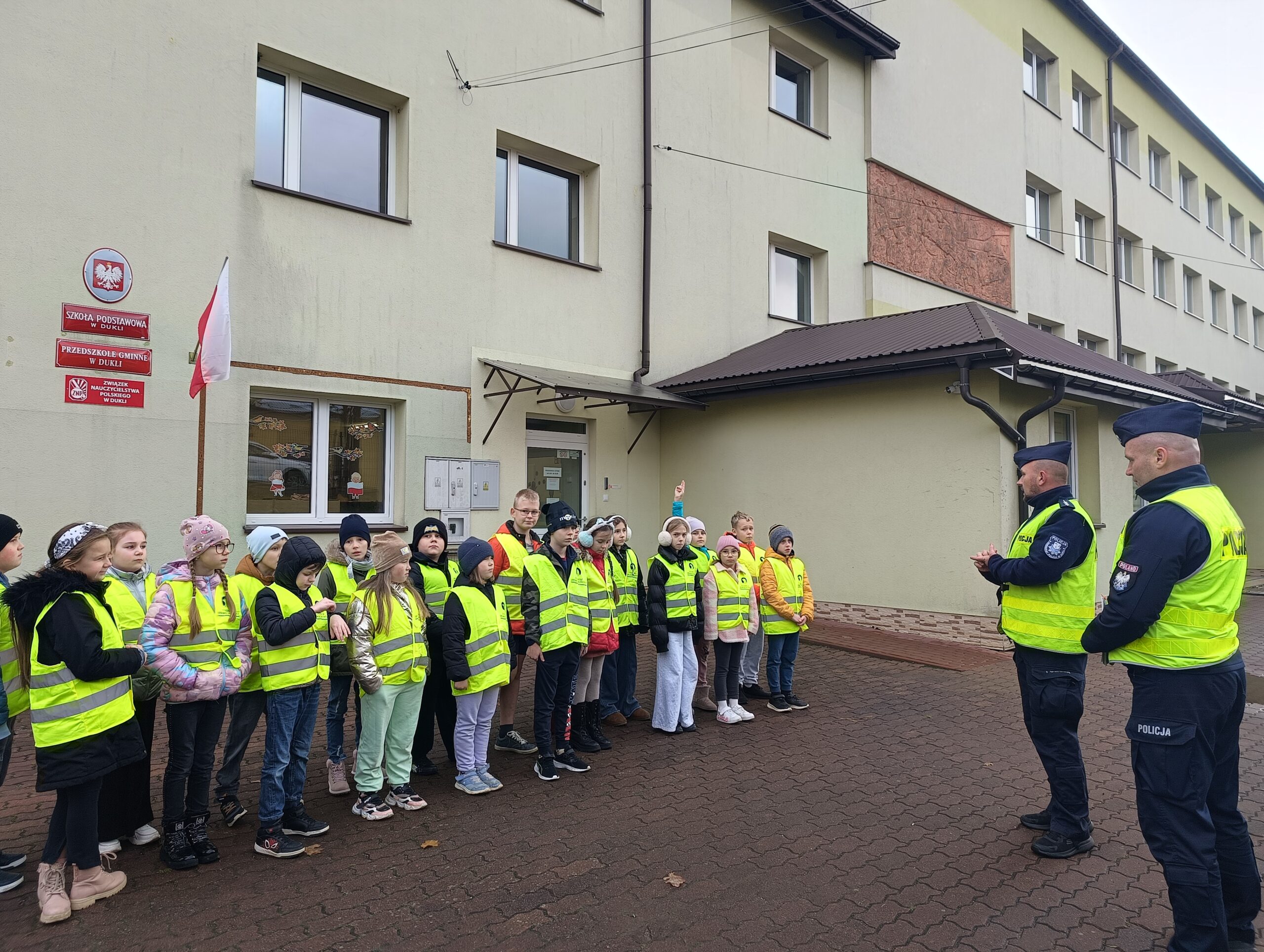 Uczniowie klasy 3 c wzięli udział w działaniach prewencyjnych w terenie. Dotyczyły one bezpieczeństwa na drodze oraz promocję bezpieczeństwa podczas ruchu drogowego. Działania praktyczne prowadzili policjanci z dukielskiego komisariatu – pan Piotr Bobola i pan Paweł Łukaszewski. Uczniowie przypomnieli sobie znaczenie noszenia odblasków, umiejętność rozpoznawania znaków drogowych, mieli okazję poćwiczyć prawidłowe zachowanie podczas przechodzenia przez jezdnię. Ważnym przypomnieniem było to, że nie należy wbiegać na jezdnię nagle, np. zza stojącego pojazdu czy ogrodzenia, a ostrożnym i czujnym należy być zawsze. Uczniowie podziękowali panom policjantom wręczając własnoręcznie przygotowane laurki. Działania praktyczne są najlepszą metodą pracy, a realizowane w ten sposób treści są najbardziej zapamiętane przez dzieci. A temat bezpieczeństwa na drodze jest priorytetowy, bo życie mamy tylko jedno.