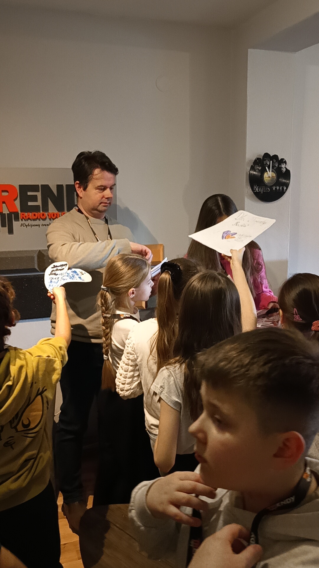 Uczniowie klasy 3 c przeżyli wspaniałą przygodę. Odwiedzili w Krośnie Trendy Radio i brali udział w audycji radiowej. Mieli okazję przekonać się osobiście, jak ważna i odpowiedzialna jest praca w radio. Zrozumieli, jak ważna jest umiejętność pięknego wysławiania się, znajomość wielu słów i ich synonimów. Oczywiście wiele innych umiejętności powinni posiadać pracownicy radio, spośród nich bardzo ważną jest umiejętność właściwych komunikacji interpersonalnych i sprytu redaktorskiego. Na pewno ta wizyta zapadnie dzieciom w pamięci, a razem z tym powstanie refleksja – jak ważnym jest zdobywanie wiedzy i poznawanie świata.