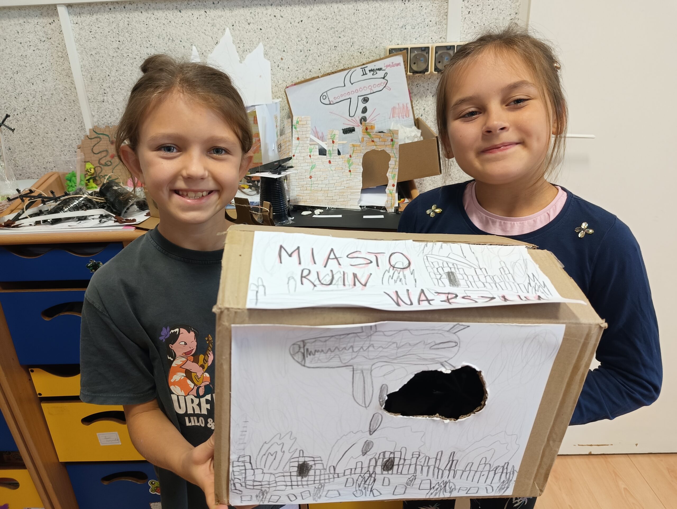 Uczniowie podjęli się poprzez swoje prace pokazać, jak wyobrażają sobie zniszczoną po postaniu Warszawę. Ich prace były bardzo kreatywne, pomysłowe i oddające nastrój tamtych dni. Zasieki, ruiny domów, zniszczone mieszkania do których można było zajrzeć poprzez dziurę wydartą w ścianie przez bombę – to tylko część przedstawionych powstańczych scen. Dzieci dowiedziały się, co oznacza godzina W i jak wygląda symbol Polski Walczącej. Obejrzały czasopismo przywiezione z Muzeum Powstania Warszawskiego, które jest hołdem mieszkańców Warszawy dla tych, którzy walczyli i ginęli za wolną Polskę w 1944 roku.
