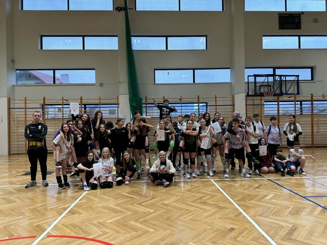 W dniu 12.02.2024 roku w naszej szkole odbyły się zawody w piłce siatkowej grup mieszanych .